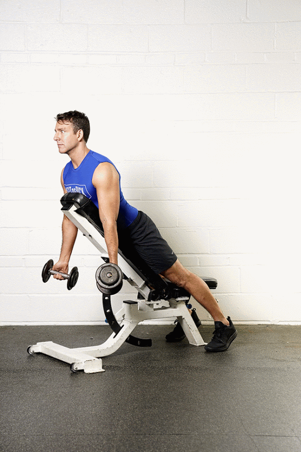 - Must maintain plank position while you row: flat back, tight abs. Watch out for rounding of shoulders and sagging back. Avoid shifting weight to the side with foot on the ground.
